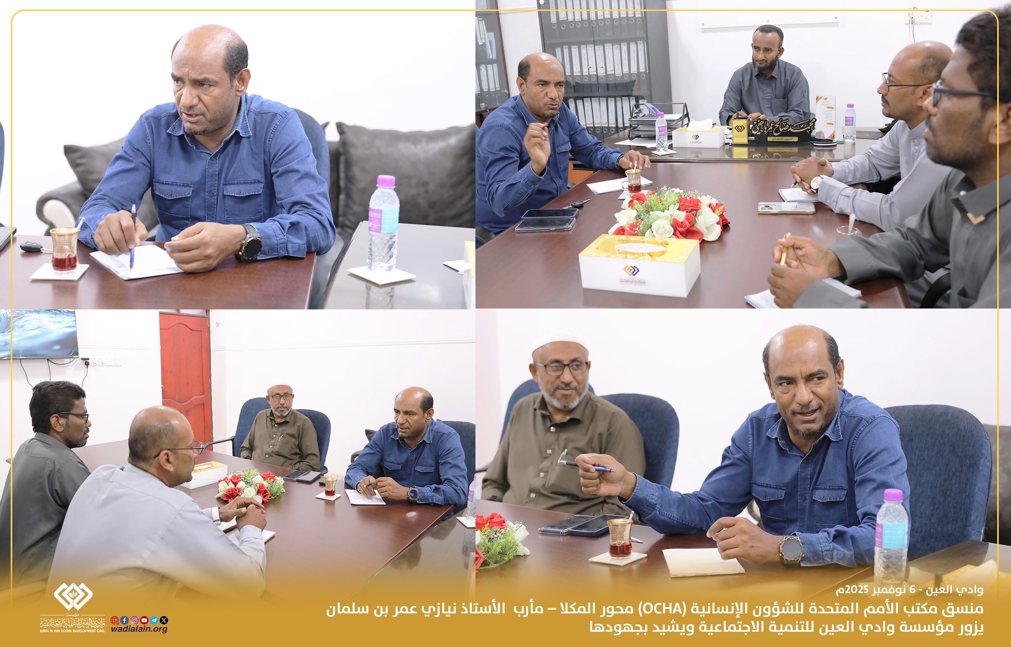 استقبلت مؤسسة وادي العين للتنمية الاجتماعية اليوم الأستاذ نيازي عمر بن سلمان ، منسق مكتب الأمم المتحدة للشؤون الإنسانية (OCHA) محور المكلا – مأرب ، في زيارة هدفت إلى الاطلاع على مشاريع المؤسسة التنموية والإنسانية وبحث فرص التعاون المشترك مع المنظمات الدولية.