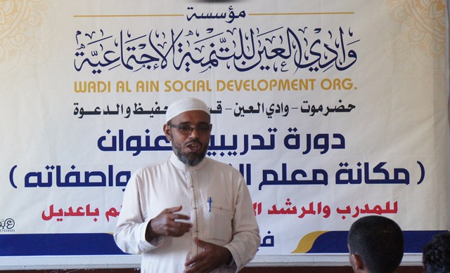 تطرق المدرب لشرح مفصل عن مكانة معلم القرآن وعظيم قدره موضحاً من خلال الأدلة الأجر والثواب العظيم الذي يناله في الدنيا والآخرة مؤكداً على أهمية القرآن في بناء الشخصية المسلمة. كما استعرض جملة من الصفات المهمة التي يجب أن يتحلى بها معلم القرآن حتى تكون لها الأثر البالغ في ترغيب الطلاب للإقبال على حلقات القرآن مستشعراً في ذلك المثل الأعلى والقدوة الحسنة في تعامله مع الطلاب من سيرة الرسول صلى الله عليه وسلم مع صحابته الكرام .